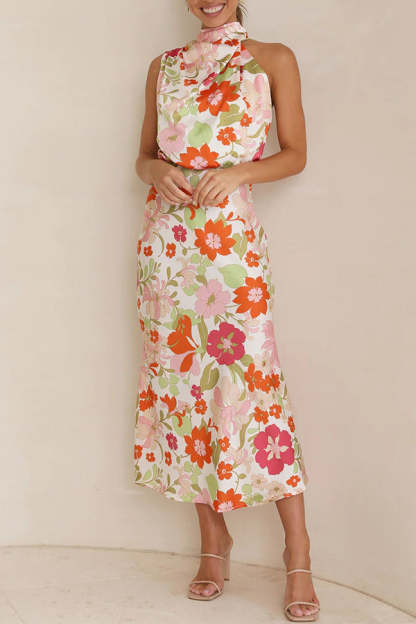Fascinating Day Floral Halter Neck Elastic Waist Maxi Dress