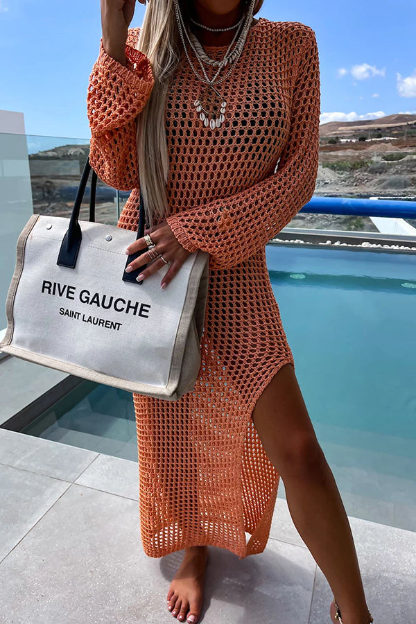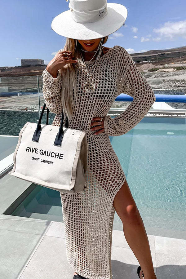 Mermaid Bay Crochet Knit Long Sleeve Cover Up Maxi Dress
