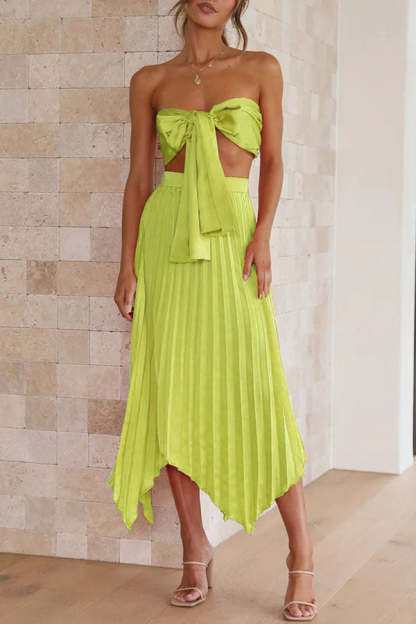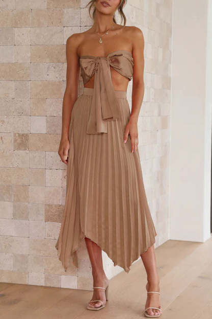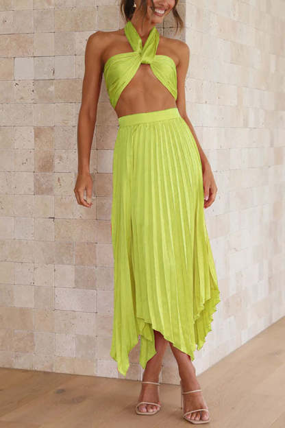 Tempe Pleated Top and Asymmetrical Hemline Skirt Set
